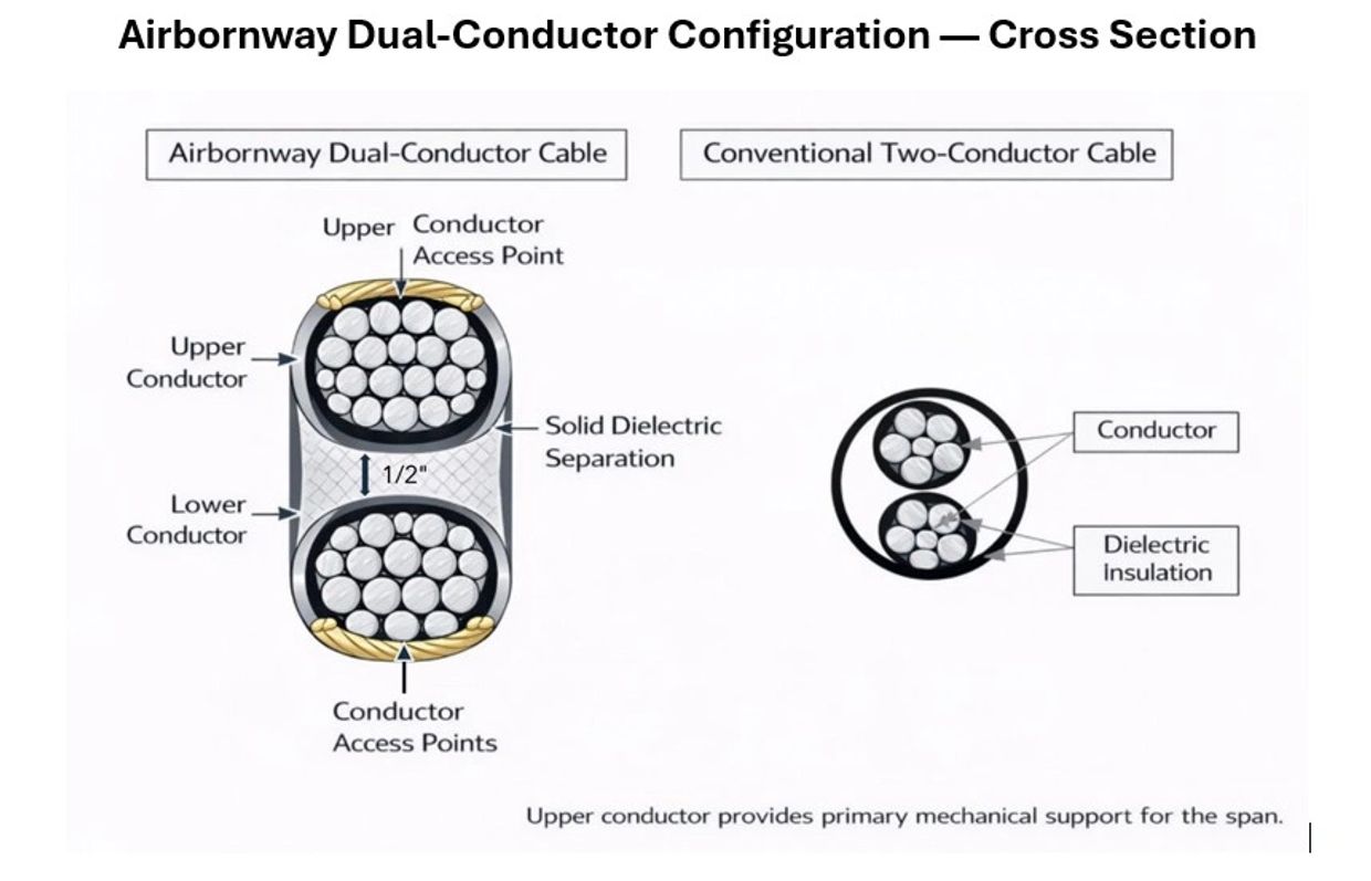 Airbornway’s dual-conductor configuration is designed to support incremental distribution capacity utility practices.